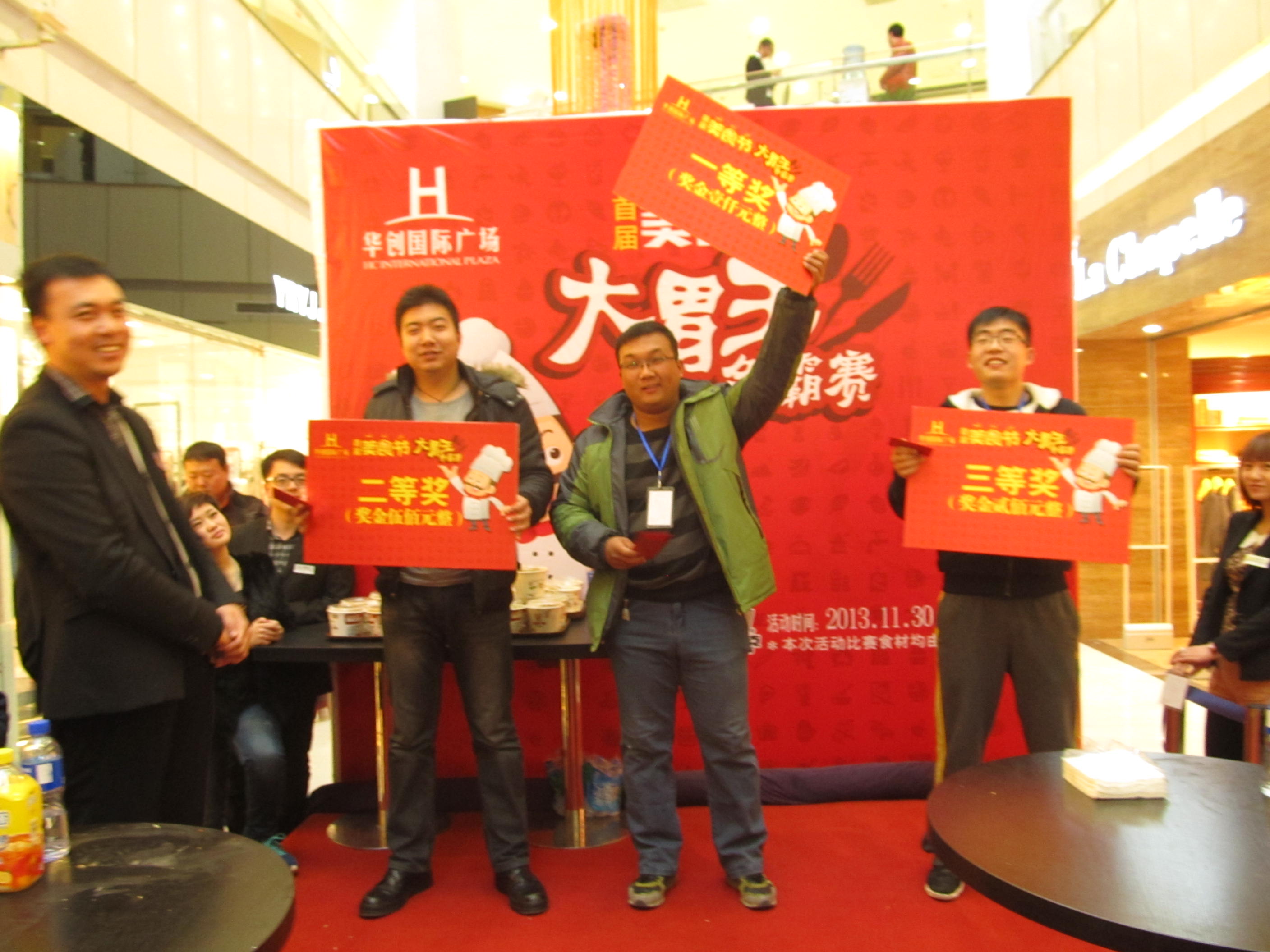 为了宣传保定饮食文化,华创国际广场在11月28日至12月8日感恩节期间特别举办了首届华创国际广场美食节,众多的国际国内知名品牌餐饮的全力参与吸引了广大的美食爱好者纷纷前往尝鲜。在30日下午举办的美食节特别活动大胃王争霸赛上,来自保定各地的10位勇敢的挑战者在15分钟的时间内向自己的极限发起挑战,最终7号选手王思思以2430克的成绩力压众位竞争者,赢得华创国际广场首届美食节大胃王称号,赢得了主办方提供的千元大奖。